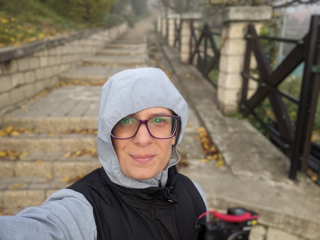 Ködből indulok, csak a kutyám feketesége világít. Csend van, alszanak a kertek, gyűrött falevelek takarják a nyarat, az őszt. Ez már a tél ködröptetője, a hegyeim elmagányosodnak az első erős fényekig. Aztán világot tár a nap, apró leveleken üldögélő harmatcseppekben ragyog.